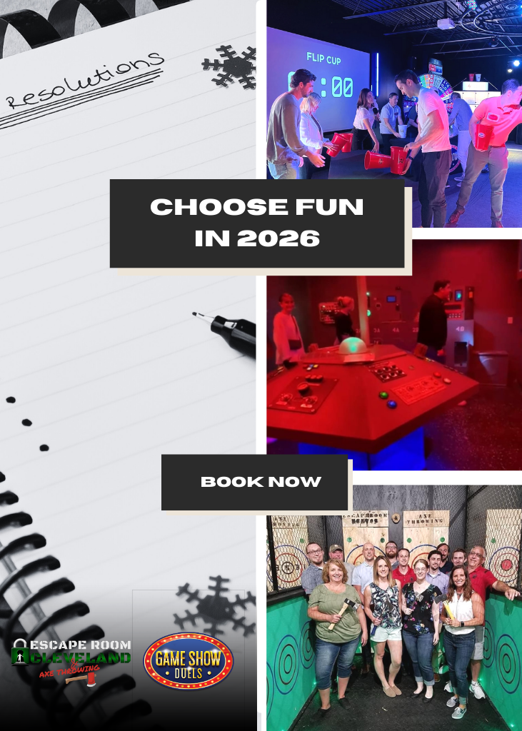 Choose from 27 top-rated escape rooms across 5 convenient locations: Escape Room Cleveland, Escape Room Strongsville, Escape Room Coventry, Escape Room Mentor & Axe Throwing, and Escape Room Middleburg & Axe Throwing.